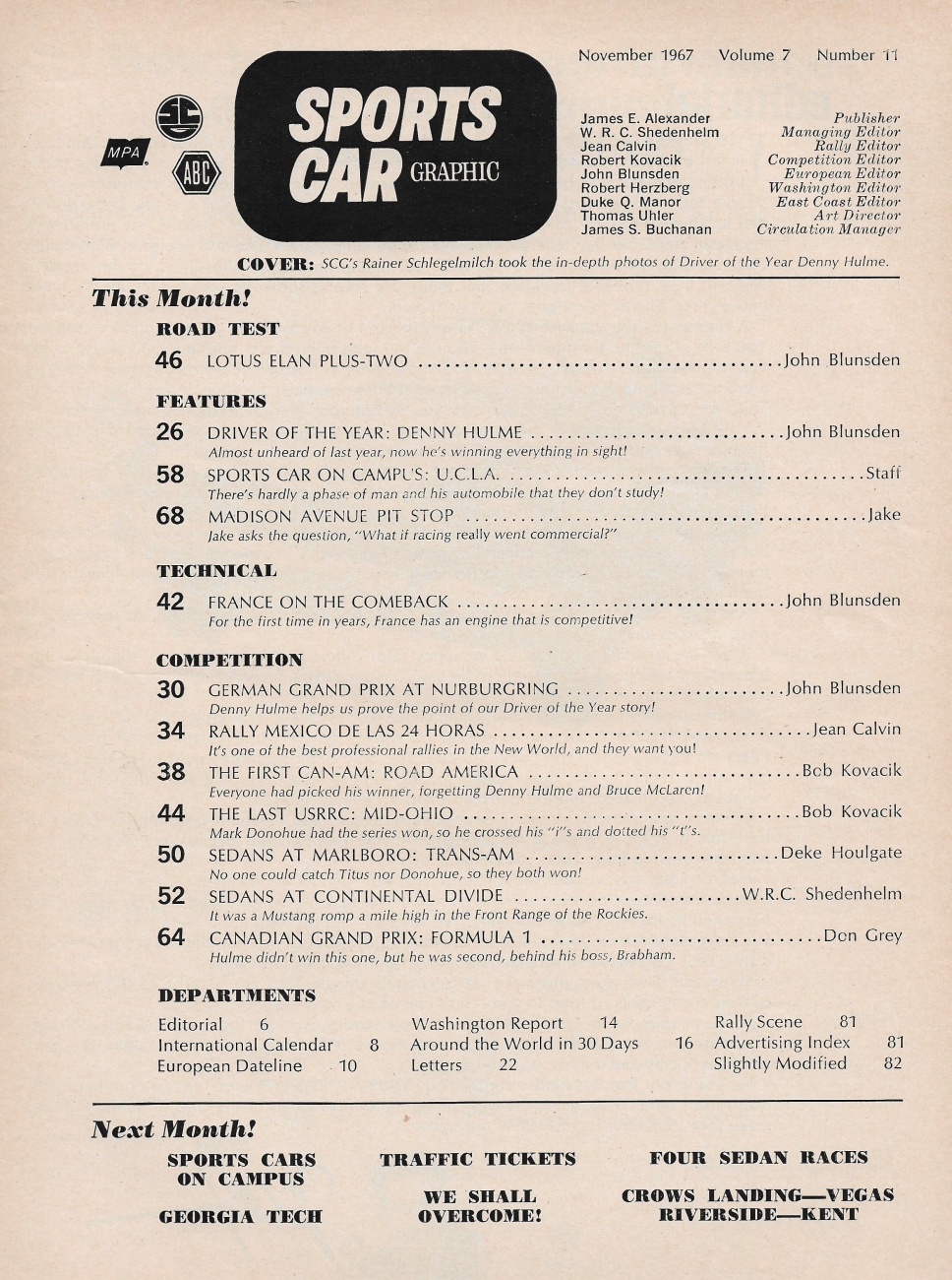 Reviews SPORTS CAR GRAPHIC 1967 NOV - T-A RACING, ELAN 2+2, DENNY HULME