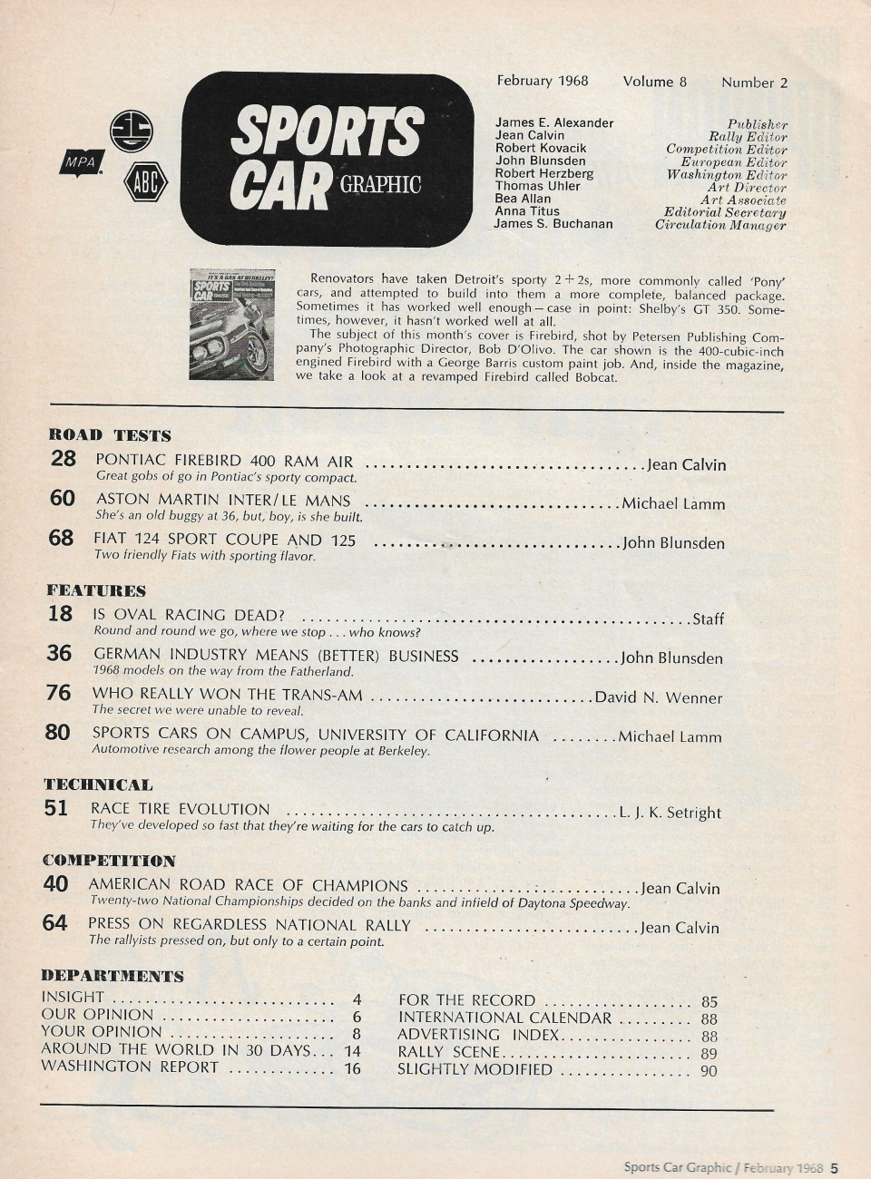 Reviews SPORTS CAR GRAPHIC 1968 FEB - BOBCAT 400 RAM-AIR, FIAT 124, 911S