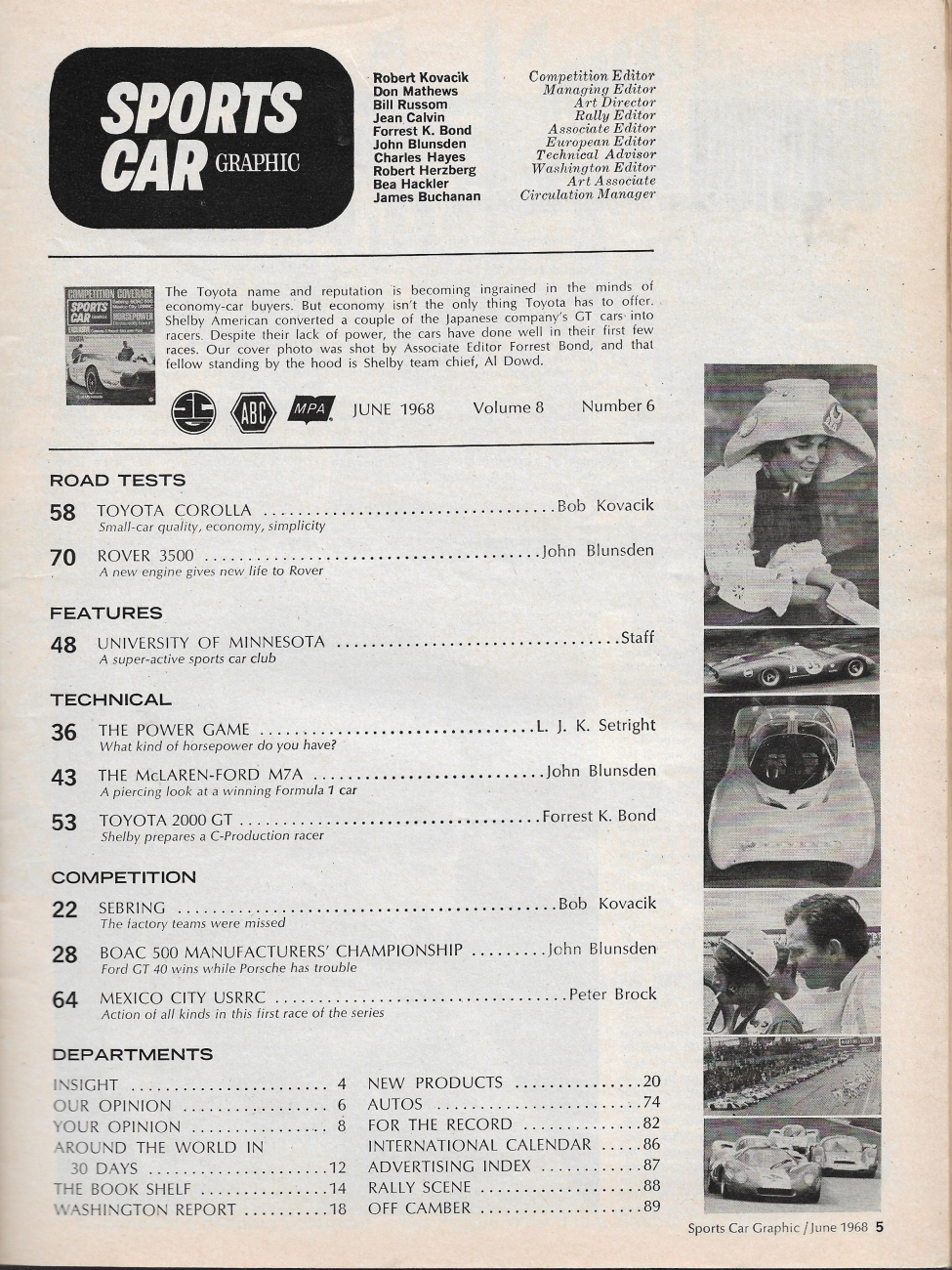 SPORTS CAR GRAPHIC 1968 JUNE - TOYOTA 2000GT, McLAREN M7A, ROVER 3500