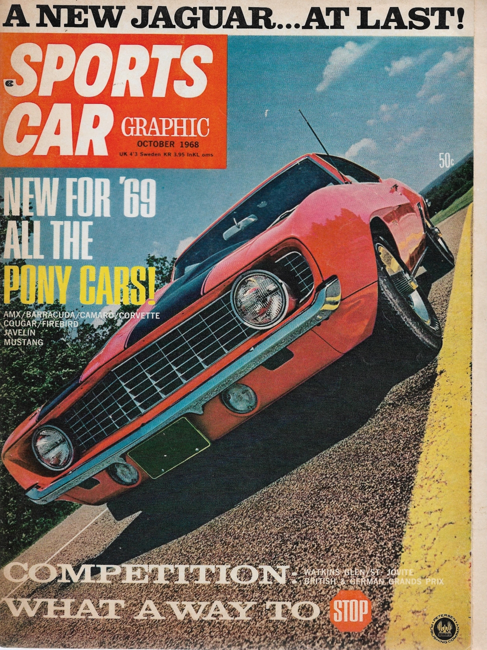 SPORTS CAR GRAPHIC 1968 OCT - NEW PONY CARS, XJ6 & SSI AIRLINE JAGS