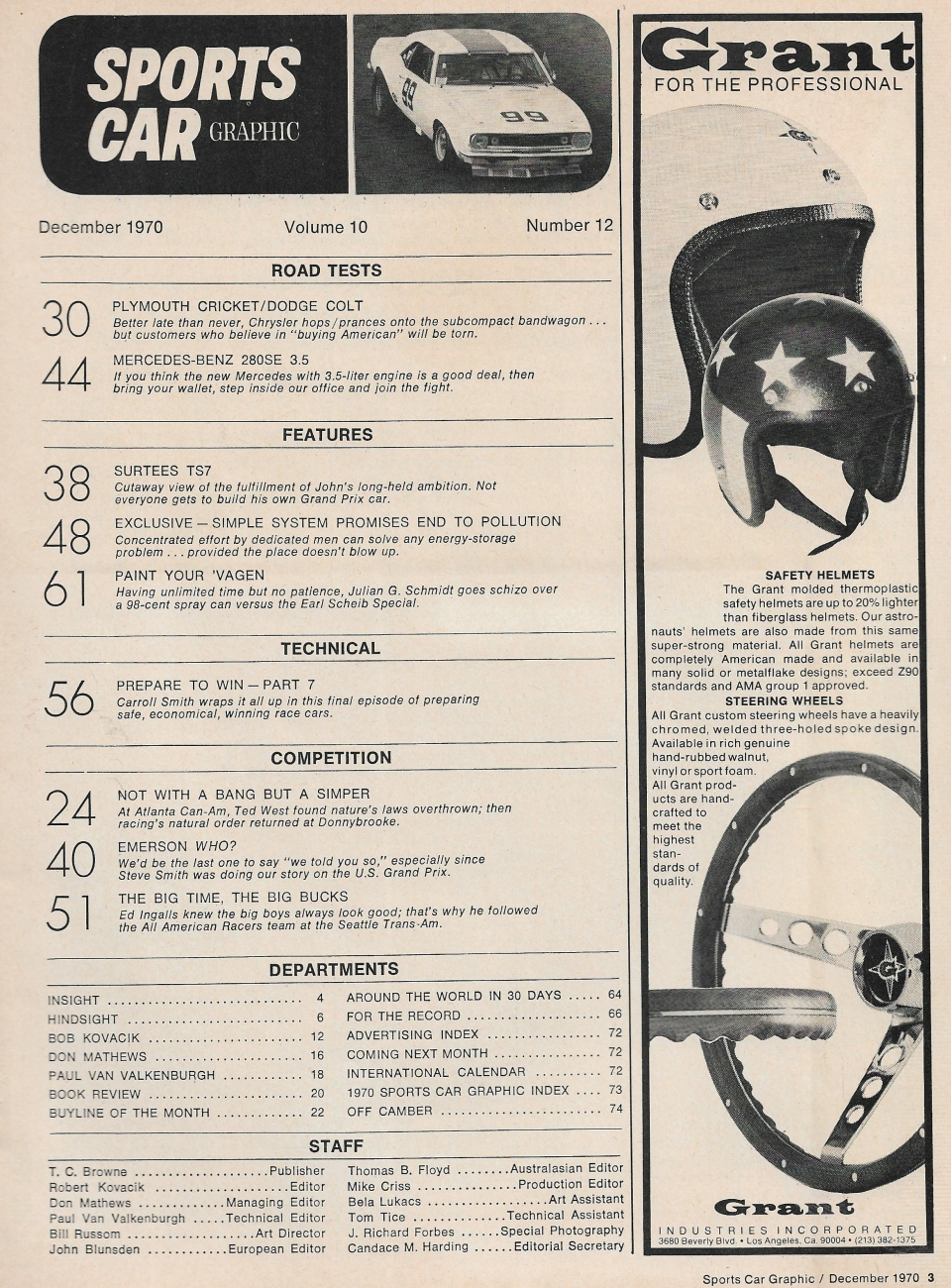 Reviews SPORTS CAR GRAPHIC 1970 DEC - CRICKET, M-B 280SE 3.5, SURTEES TS7