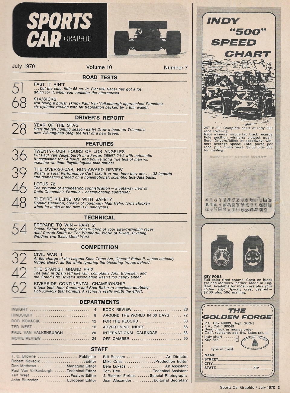 Reviews SPORTS CAR GRAPHIC 1970 JULY - STAG, FIAT 850, LOTUS 72, 914-6