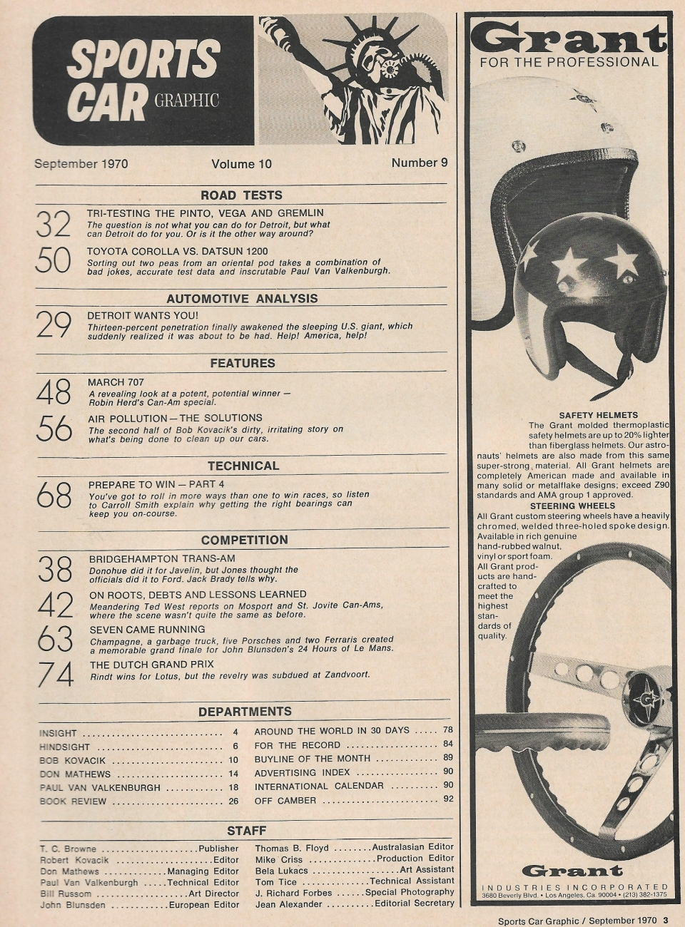 Reviews SPORTS CAR GRAPHIC 1970 SEPT - PINTO, GREMLIN, VEGA, DATSUN v COROLLA