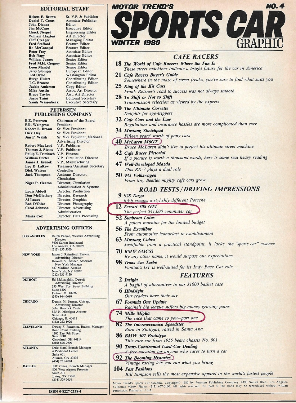 Reviews SPORTS CAR GRAPHIC 1980 #4 WINTER - MUSTANG COBRA, 928 TARGA, M6GT, T-A TURBO