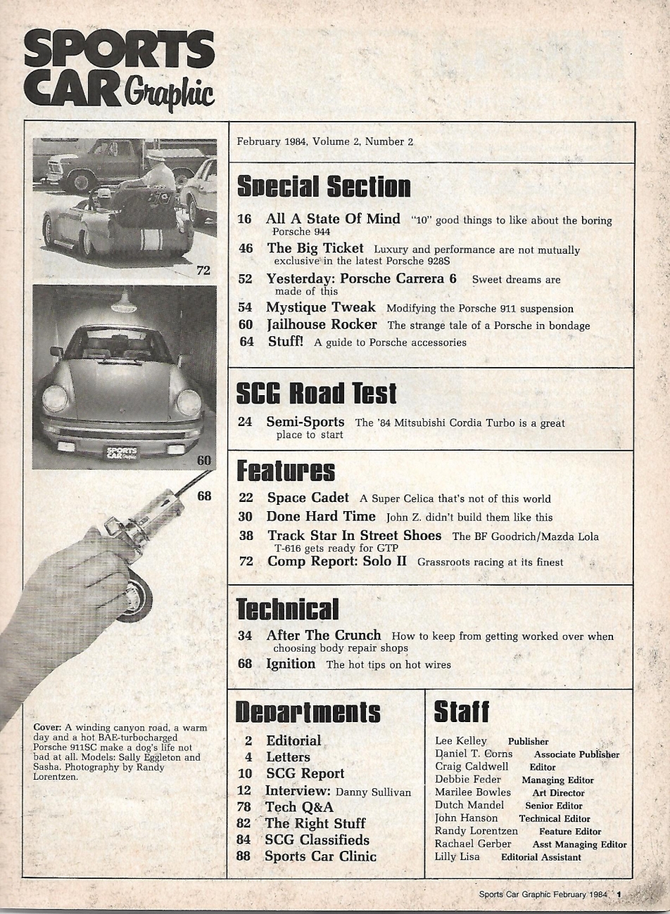SPORTS CAR GRAPHIC 1984 FEB - PORSCHE Sp,MAZDA LOLA T-616 GTP,SOLO 2,CORDIA TUR