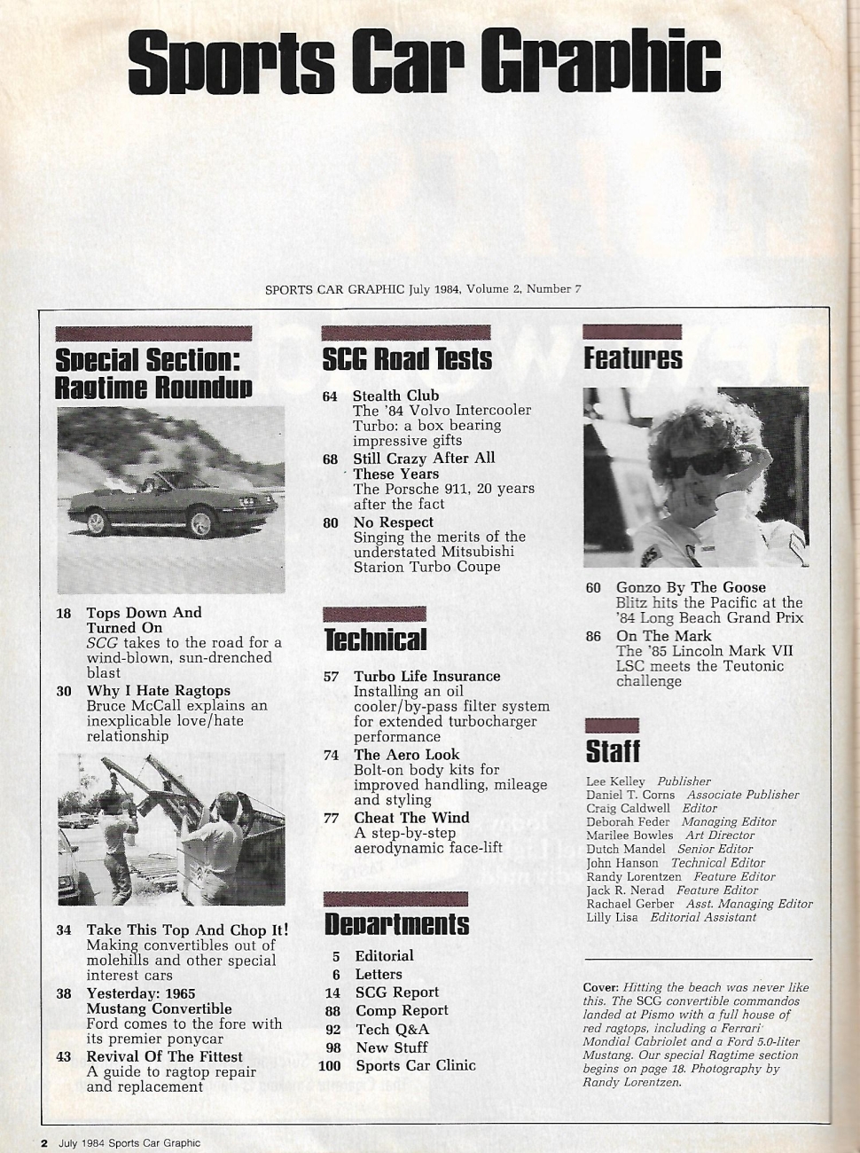 Reviews SPORTS CAR GRAPHIC 1984 JULY - LINCOLN LSC, 911 CARRERA, VOLVO INTERCOOL TURBO