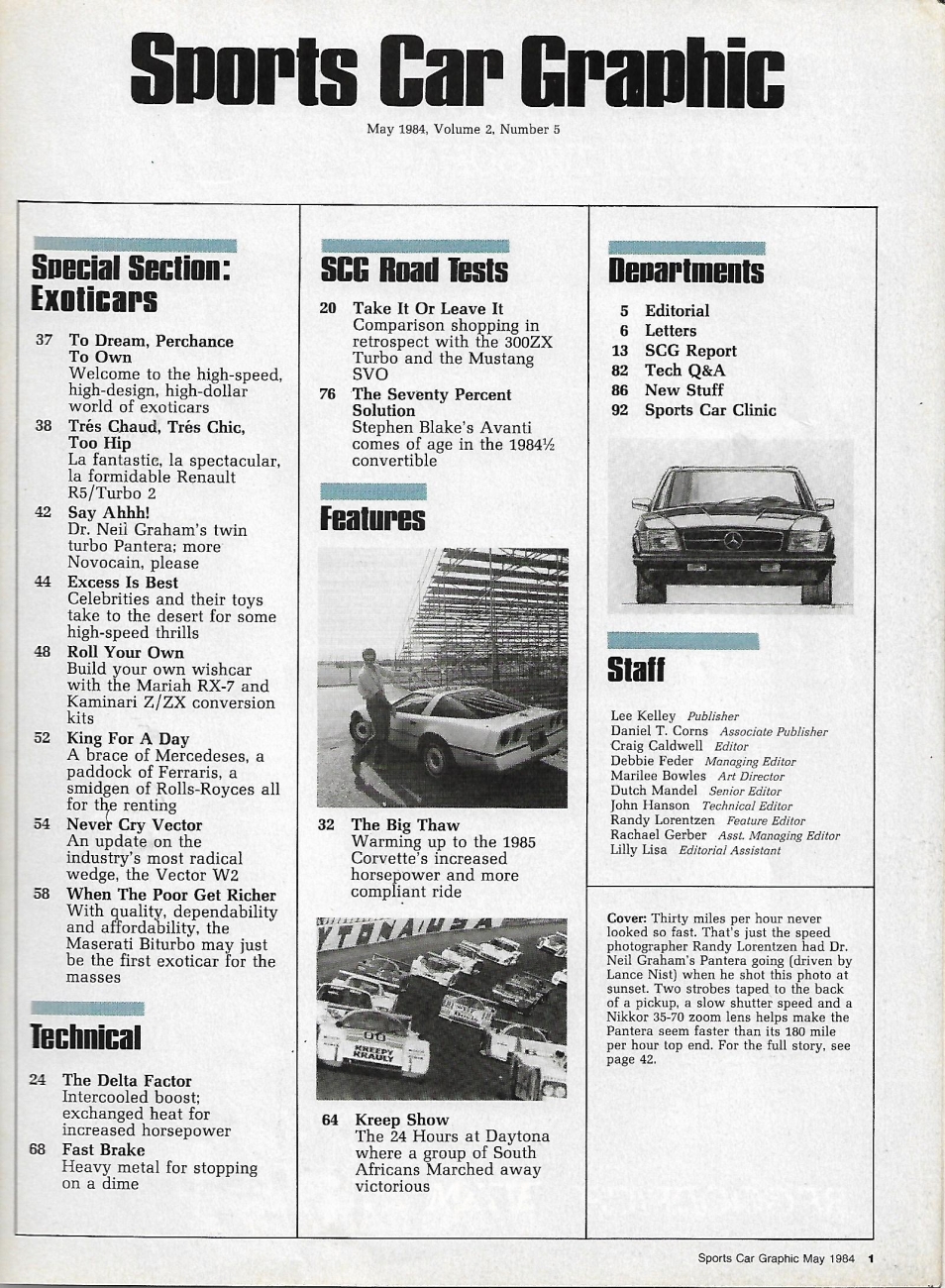 SPORTS CAR GRAPHIC 1984 MAY - SVOv300ZX TURBO, AVANTI DROPTOP, VICTOR, BITURBO*