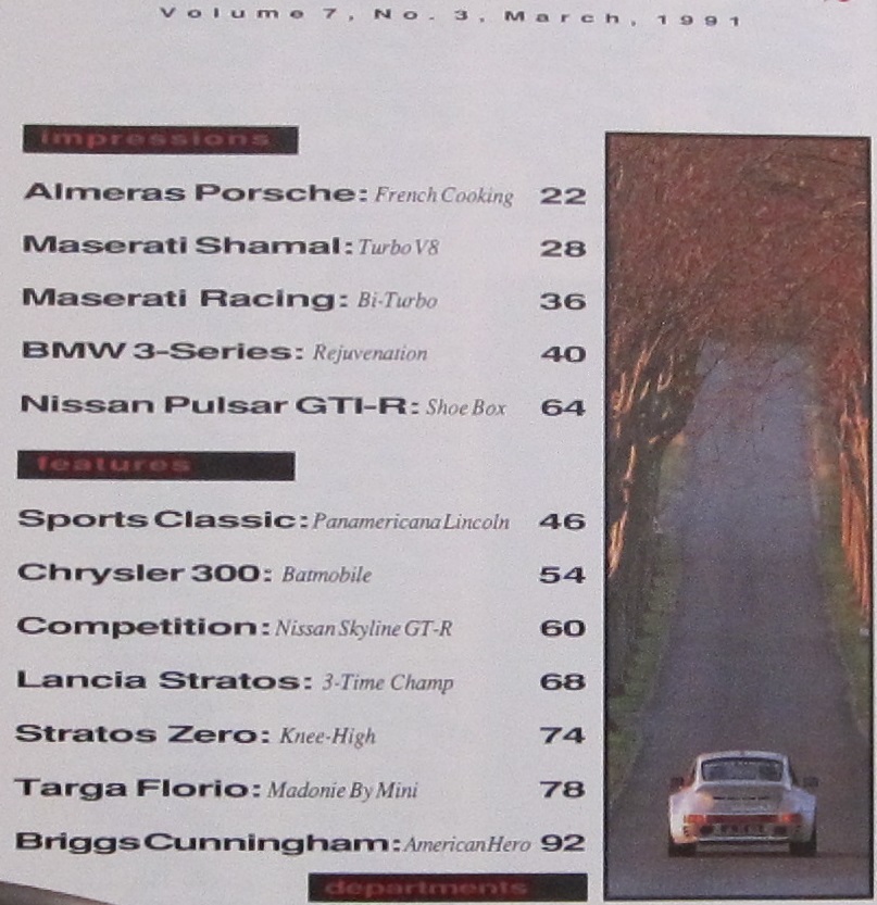 Reviews SPORTS CAR INTERNATIONAL 1991 MAR - STRATOS ZERO/LANCIA, SKYLINE GT-R, BRIGGS