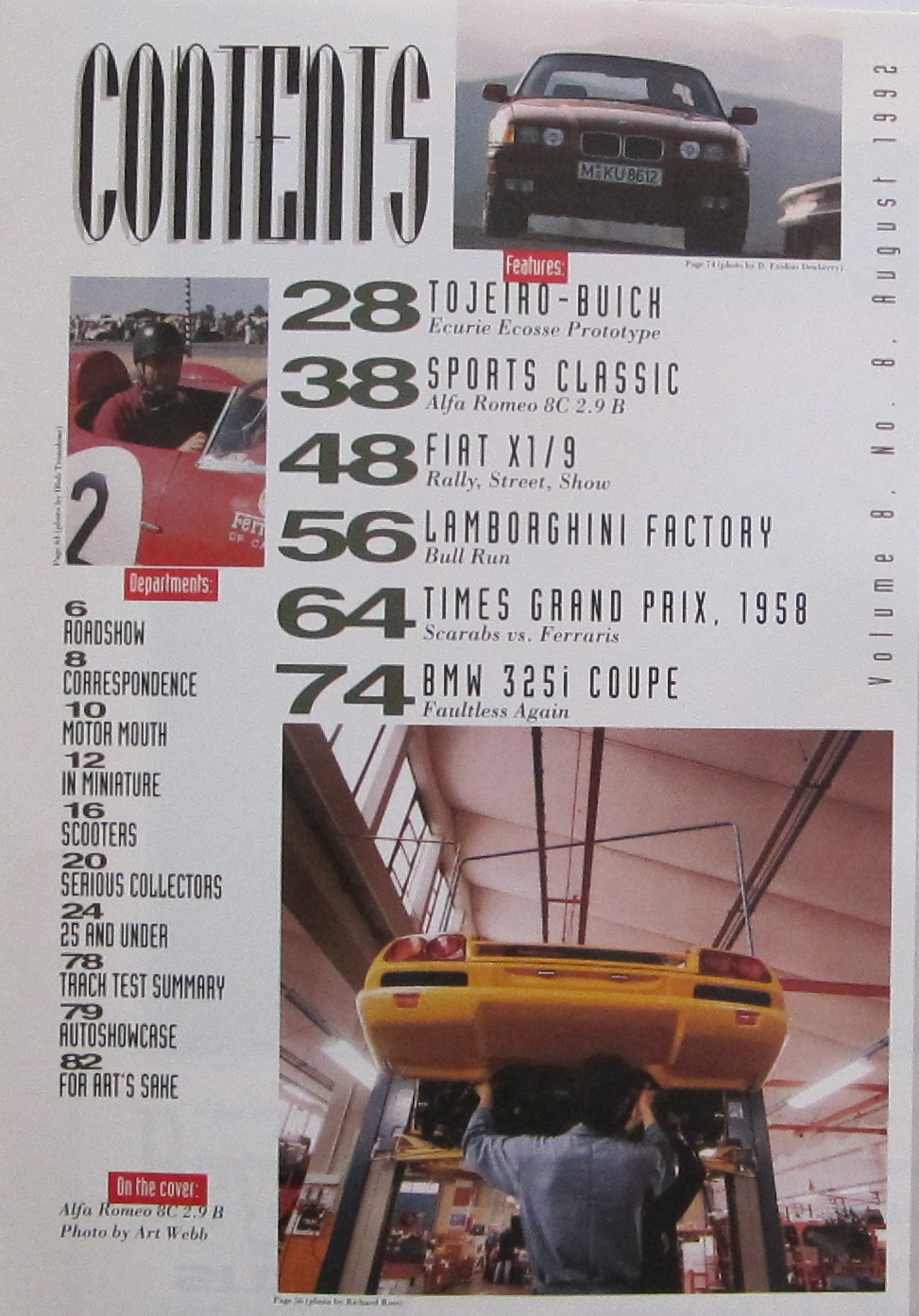 Reviews SPORTS CAR INTERNATIONAL 1992 AUG - X1/9, GS-R, ALFA 8C 2.9B, TOJEIRO BUICK