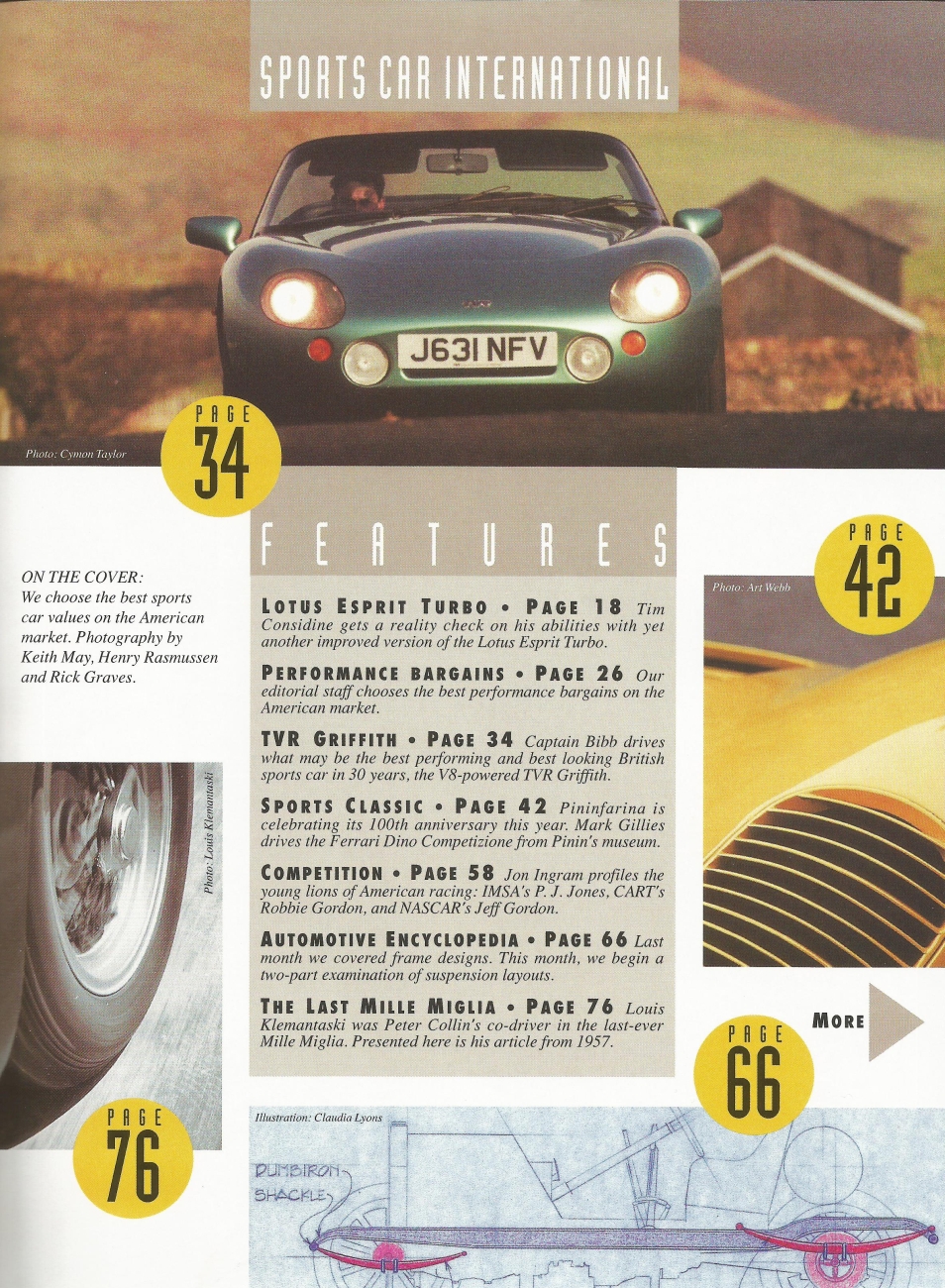 Reviews SPORTS CAR INTERNATIONAL 1993 MAR - ESPRIT-T, TVR GRIFFITH, LAST MILLE MIGLIA