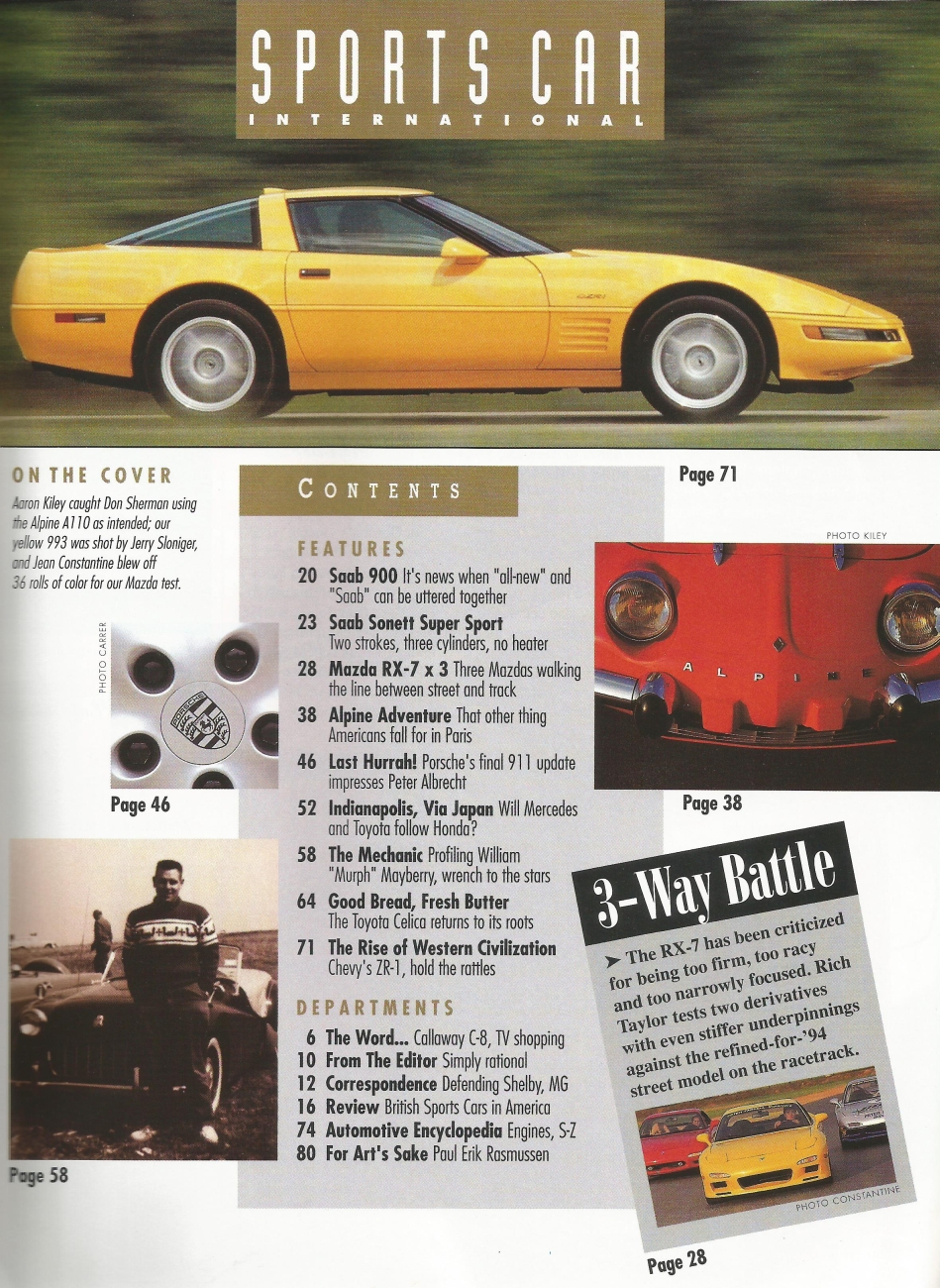 Reviews SPORTS CAR INTERNATIONAL 1994 JAN - A110 ALPINE, SONETT SUPER SPORT, ZR-1