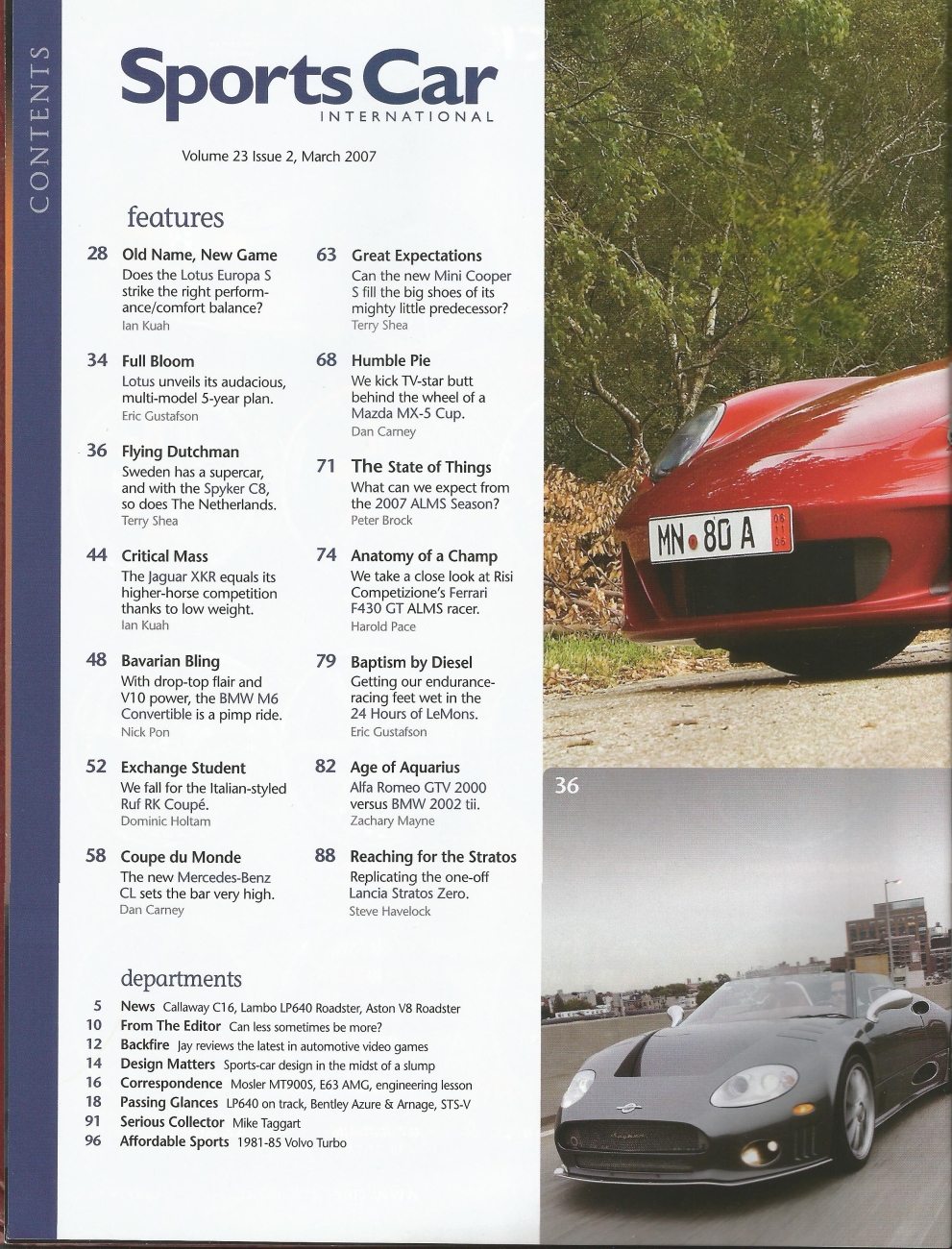 Reviews SPORTS CAR INTERNATIONAL 2007 MAR - NEW MINI & EUROPA, XKR, SPYKER C8, RUF RK