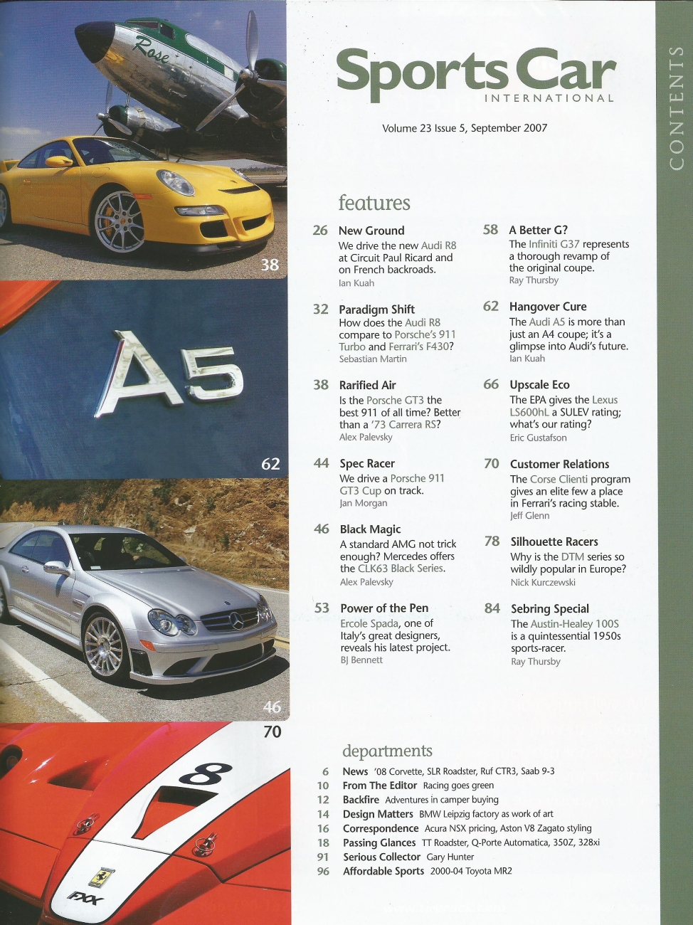 Reviews SPORTS CAR INTERNATIONAL 2007 SEPT - F430 v R8 v 911 TURBO, FXX, G37, A-H S100
