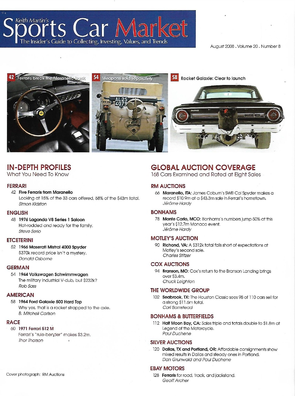 SPORTS CAR MARKET 2008 AUG - VW SCHWIMMWAGEN, '64 GALAXIE 500, '71 FERRARI 512M