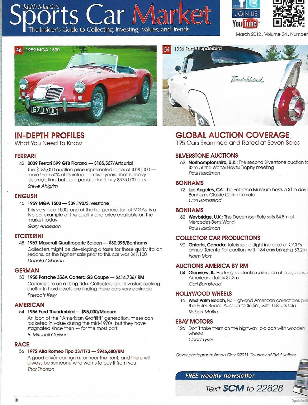 SPORTS CAR MARKET 2012 MAR - '56 THUNDERBIRD, '58 CARRERA GS, '67 MASERATI
