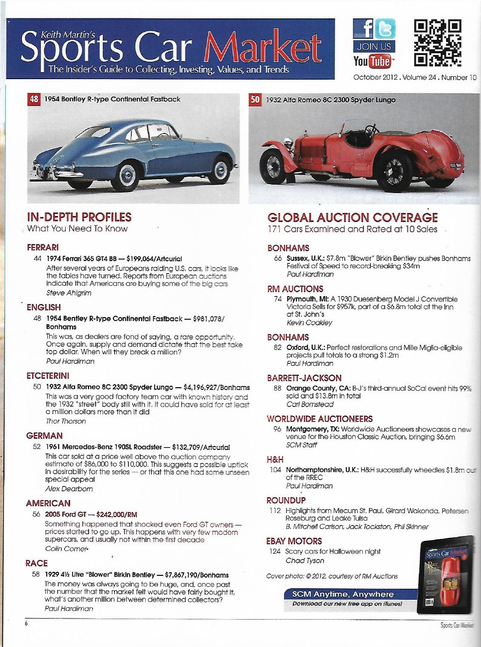 SPORTS CAR MARKET 2012 OCT - '05 FORD GT,'32 ALFA ROMEO,'54 BENTLEY, 74 FERRARI