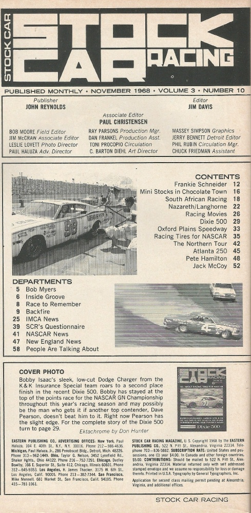 STOCK CAR RACING 1968 NOV - HAMILTON, SCHNEIDER