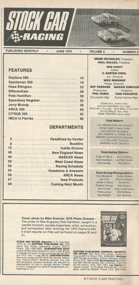Reviews STOCK CAR RACING 1970 JUNE - ELLINGTON, BLUNDY, Hamilton, Differentials, IMCA