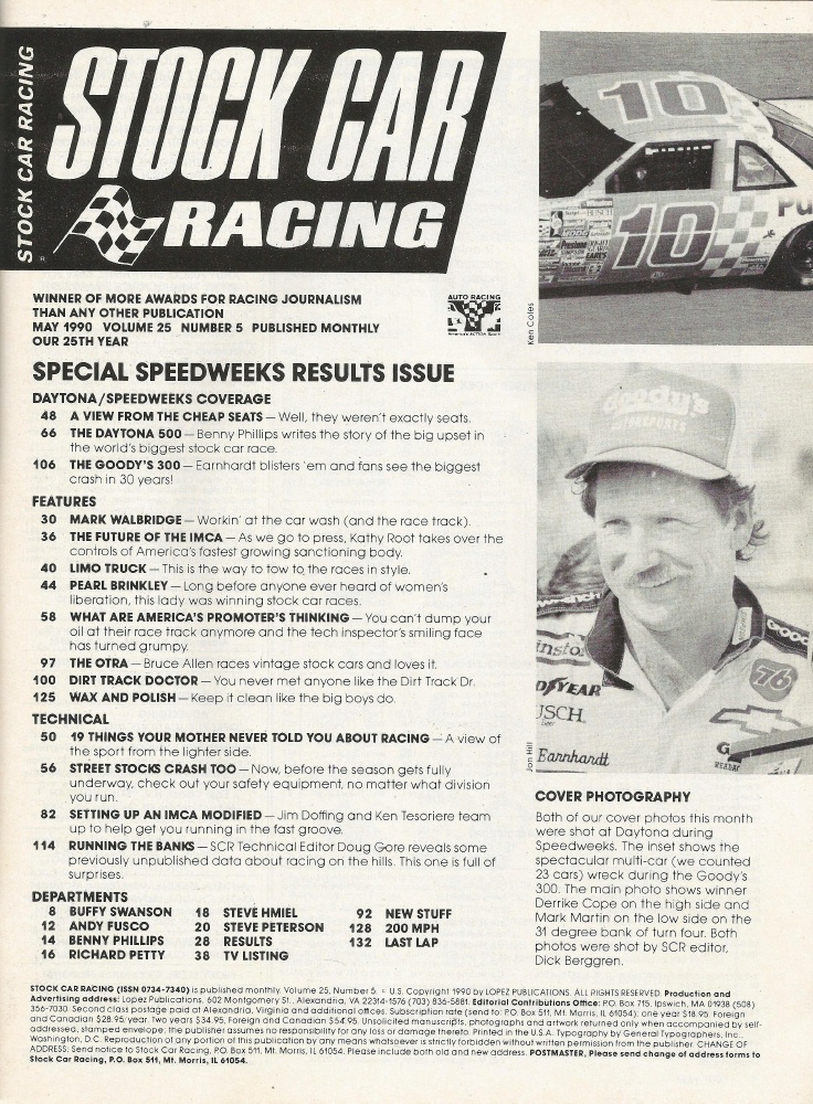Reviews STOCK CAR RACING 1990 MAY - Walbridge, Phillips, Earnhardt, Kathy Root, OTRA