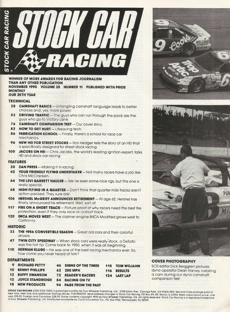 Reviews STOCK CAR RACING 1990 NOV - Camshaft, HEI, Press, Garrett Hauler, McGriff, IMCA