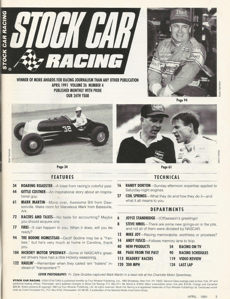 Reviews STOCK CAR RACING 1991 APR - Coster, Martin, Bodine, Dorton, Coil Springs