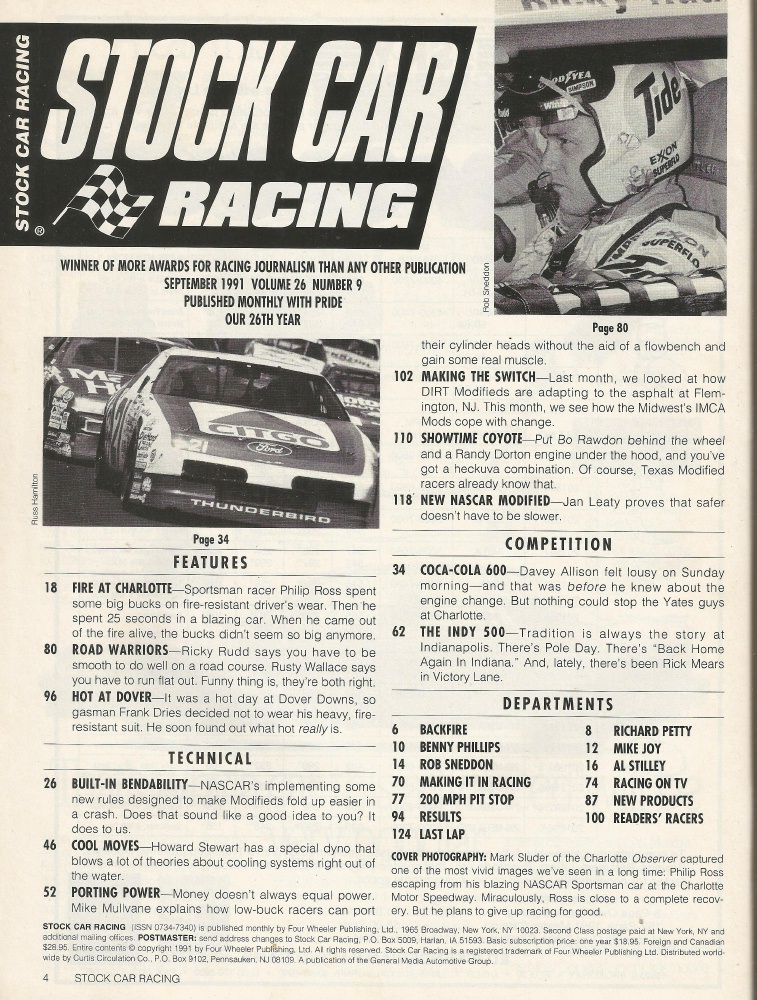 Reviews STOCK CAR RACING 1991 SEPT - Phil Ross, Rudd, Dries, Rawdon, Jan Leaty, Allison