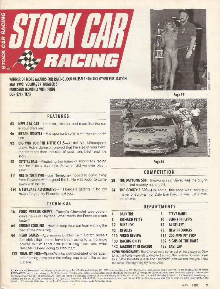 Reviews STOCK CAR RACING 1992 MAY - ASA Car, Goewey, Robin Johnson, Nemechek