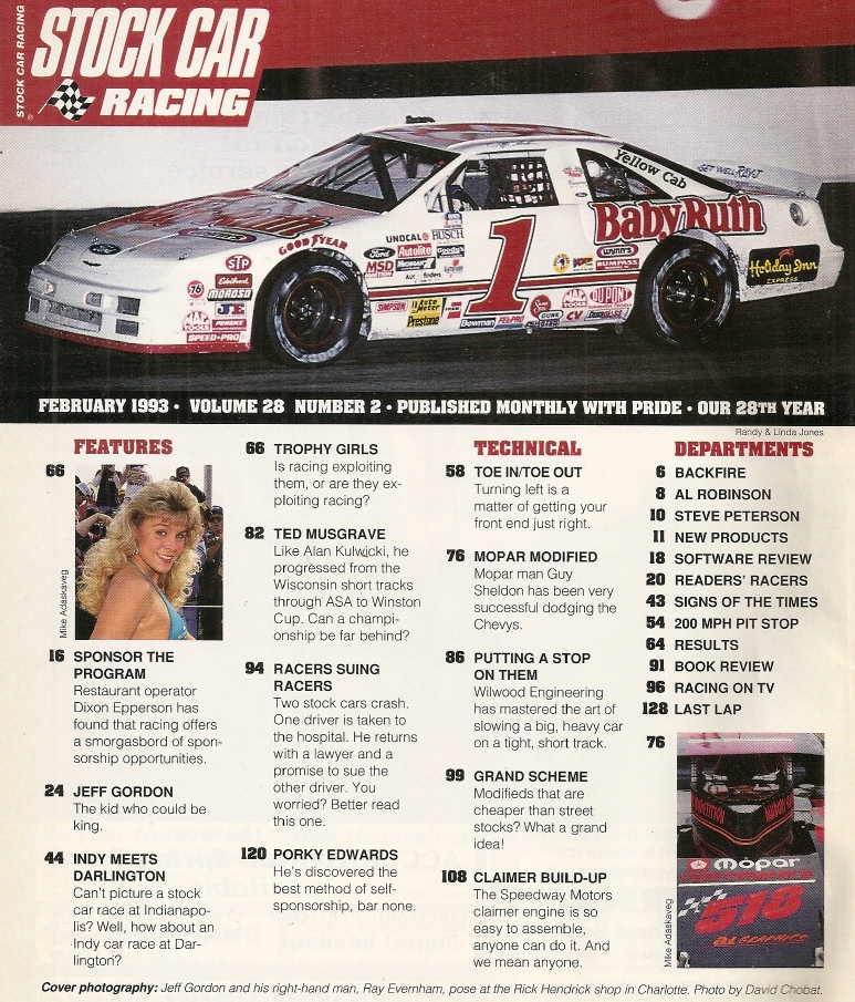 Reviews STOCK CAR RACING 1993 FEB - JEFF GORDAN Spcl, INDY GOES TO DARLINGTON, PORKY*