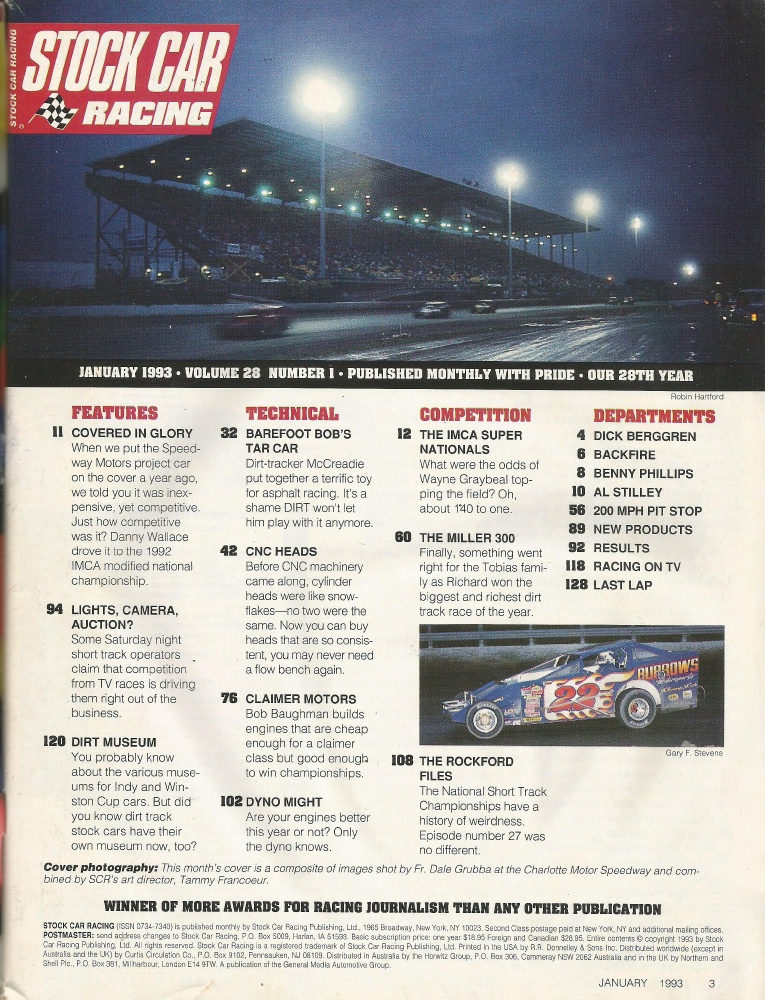 Reviews STOCK CAR RACING 1993 JAN - Danny Wallace, Dirt Museum,Claimer Motors,IMCA Nats