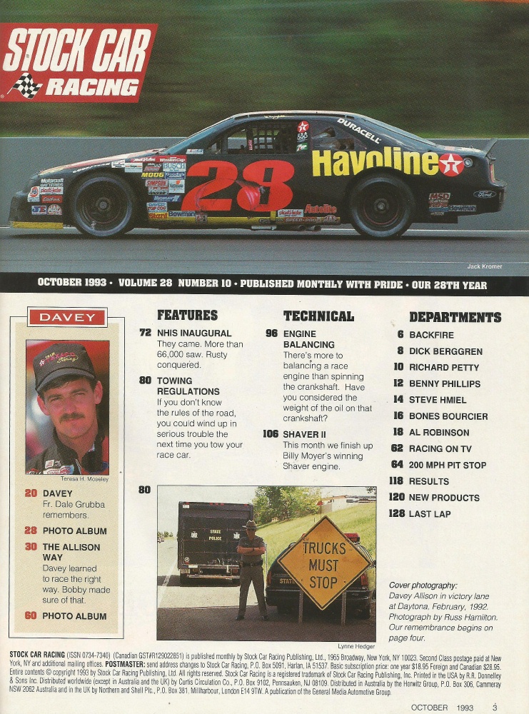 Reviews STOCK CAR RACING 1993 OCT - Davey Allison, Engine Balancing, Bill Moyer, NHIS
