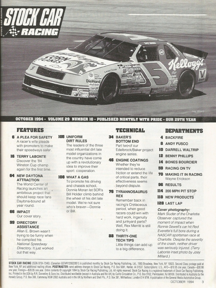 Reviews STOCK CAR RACING 1994 OCT - Labonte, Pt II Edelbrock/Baker Project Engine