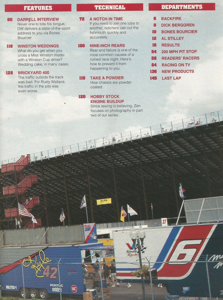 Reviews STOCK CAR RACING 1995 NOV - Brickyard 400, Winston Weddings, Fan Special