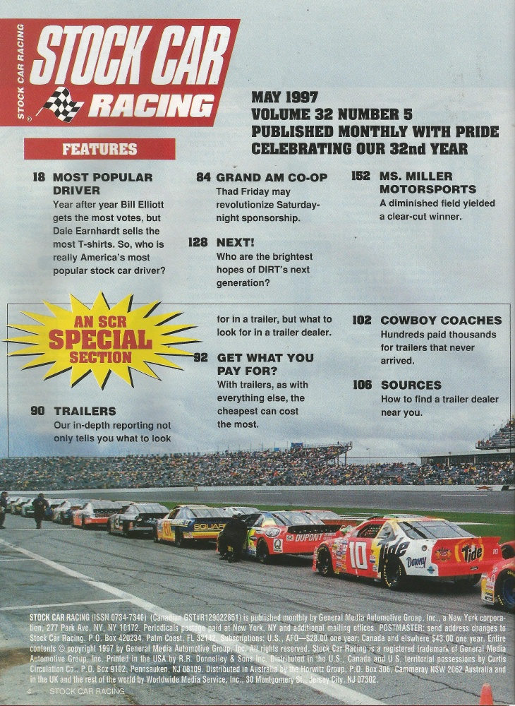 Reviews STOCK CAR RACING 1997 MAY - MARCA Cars, MS. Miller Motorsports, Trailers