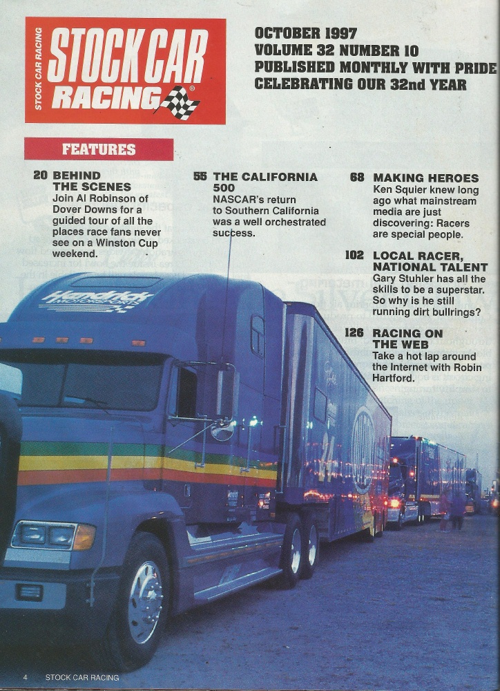 Reviews STOCK CAR RACING 1997 OCT - Ken Squier, Stuhler, Hoetzler, Brown, Smith, Gore