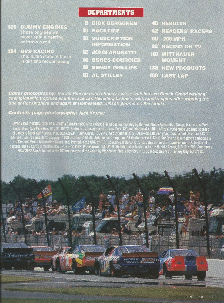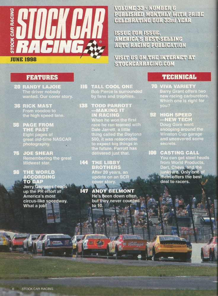Reviews STOCK CAR RACING 1998 JUNE - Lajoie,Mast, Shear, Pierce, Parrot, Libby Bros.