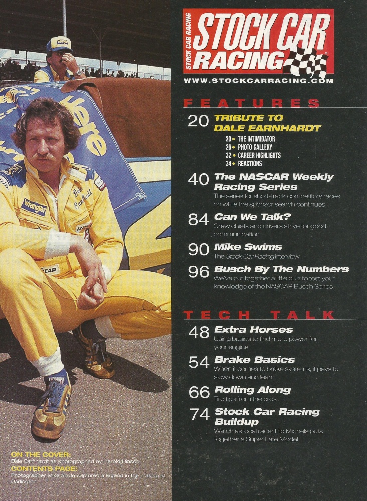 Reviews STOCK CAR RACING 2001 MAY - Dale Earnhardt Tribute, Mike Swims, Brakes