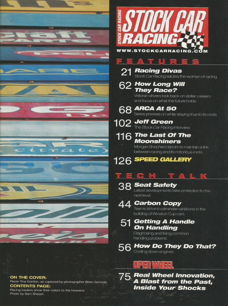 Reviews STOCK CAR RACING 2002 FEB - Jeff Green, Morgan Shepherd, Racing Divas