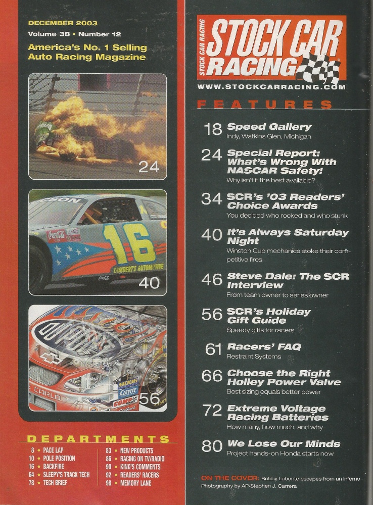 Reviews STOCK CAR RACING 2003 DEC - Dale,Holley Power Valve,Project Hands on Honda Pt I