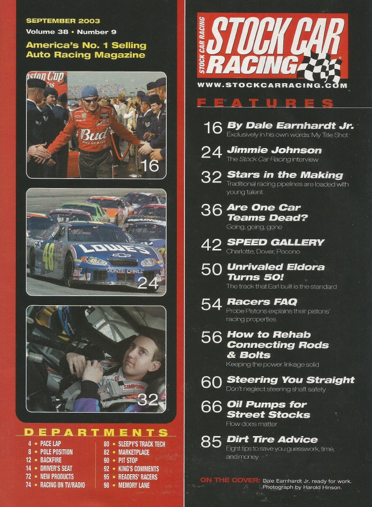 Reviews STOCK CAR RACING 2003 SEPT - Earnhardt, Johnson, Eldora Track, Steering, Rods
