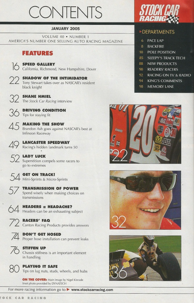 Reviews STOCK CAR RACING 2005 JAN - Stewart, Hmiel, Lancaster, Mini-Micro Sprints