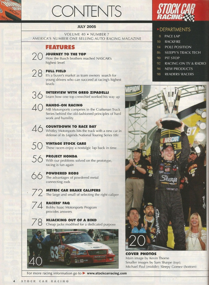 Reviews STOCK CAR RACING 2005 JULY - Zipadelli, Proj honda, Rods, Metric Brakes, Isaac