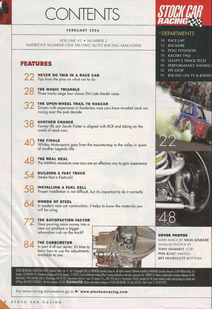 Reviews STOCK CAR RACING 2006 FEB - Open-Wheel-NASCAR,Fisher,Whitley,MMRA, Fastruck