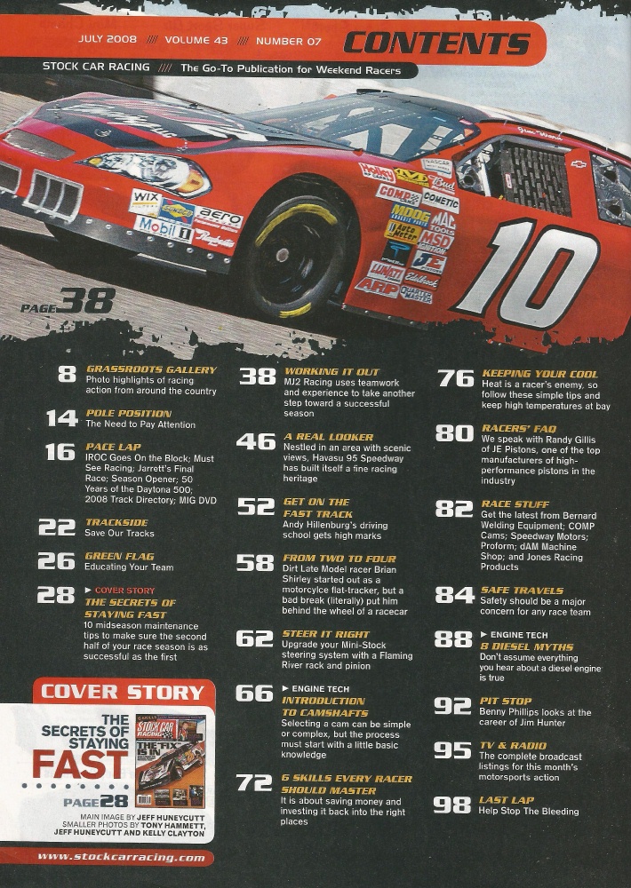Reviews STOCK CAR RACING 2008 JULY - Jarrett, MJ12, Havasu 95, Hillenburg, Brian Shirley