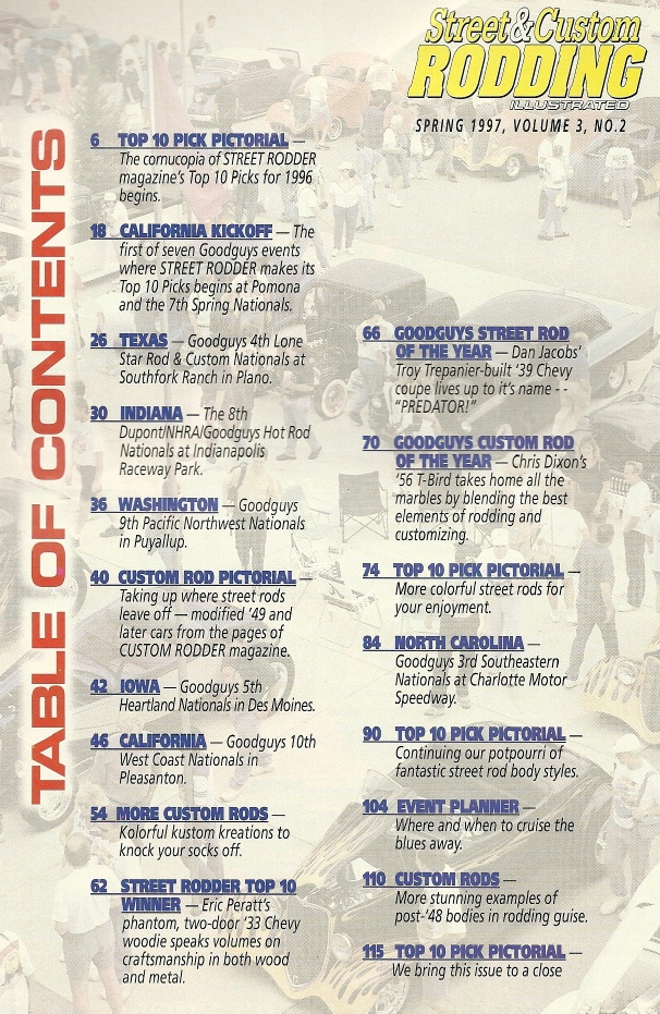 STREET & CUSTOM RODDING ILLUSTRATED 1997 SPRINGThere is no description for this magazine yet. See picture of cover and contents below for details. ![]() ![]() |