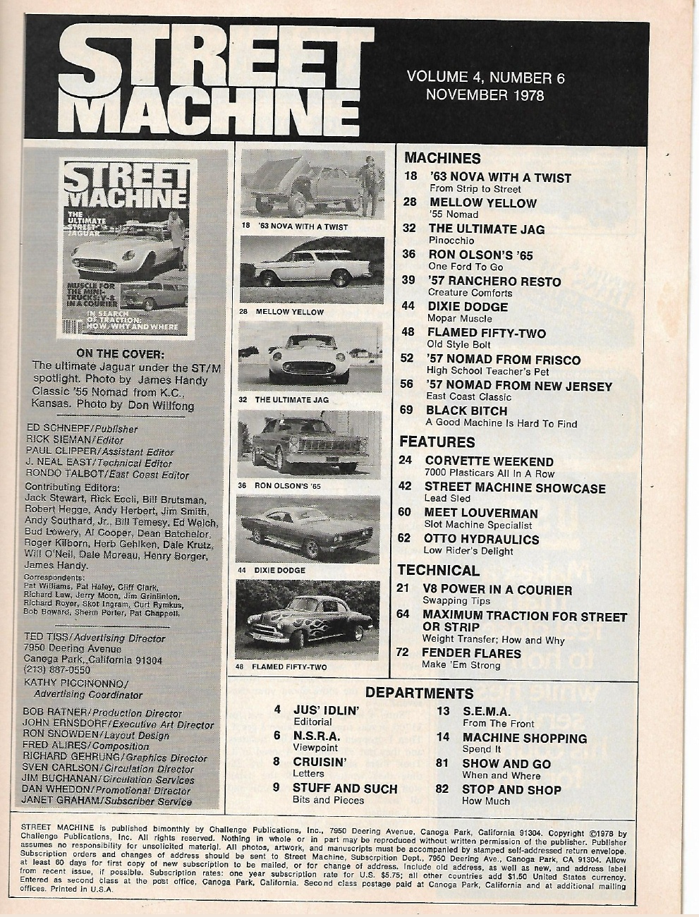 Reviews STREET MACHINE 1978 NOV - CHEVY NOMADS,V-8 IN A COURIER,TRACTION, STREET JAGUAR