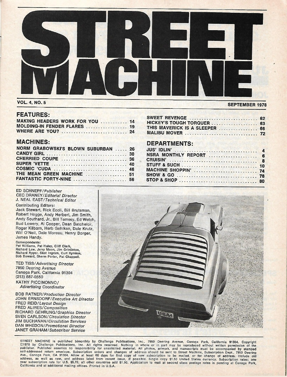 Reviews STREET MACHINE 1978 SEPT - GRABOWSKI'S BLOWN SUBURBAN, MOLDING FENDER FLARES