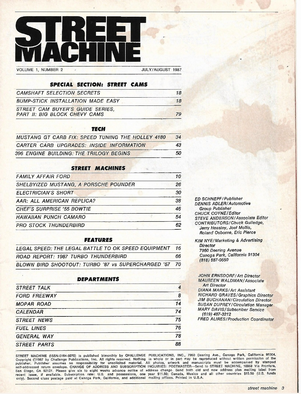 Reviews STREET MACHINE 1987 AUG - CHEVY ENGINE BUILD, MUSTANG CARB MODS, '87 TURBO*