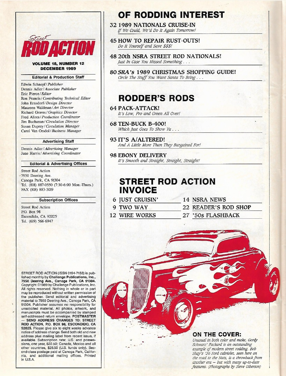 Reviews STREET ROD ACTION 1989 DEC - REPAIR RUSTO-OUTS, EBONY DELIVERY, NATS COVERAGE