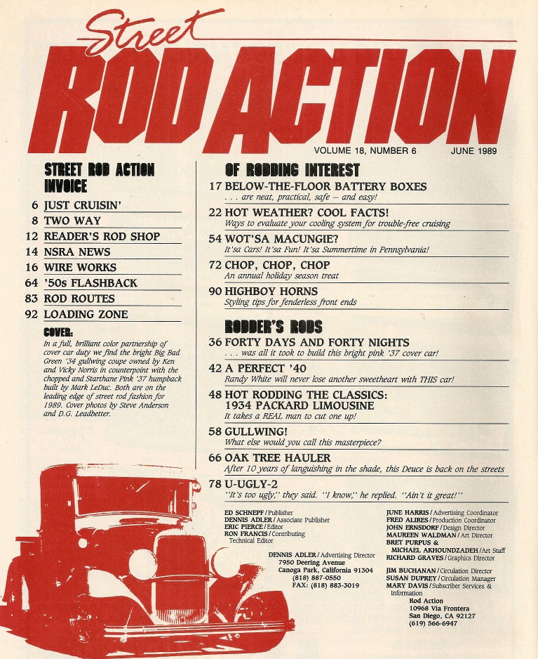 Reviews STREET ROD ACTION 1989 JUNE - BELOW THE FLOOR BATTERY BOX, '34 PACKARD LIMOUSINE
