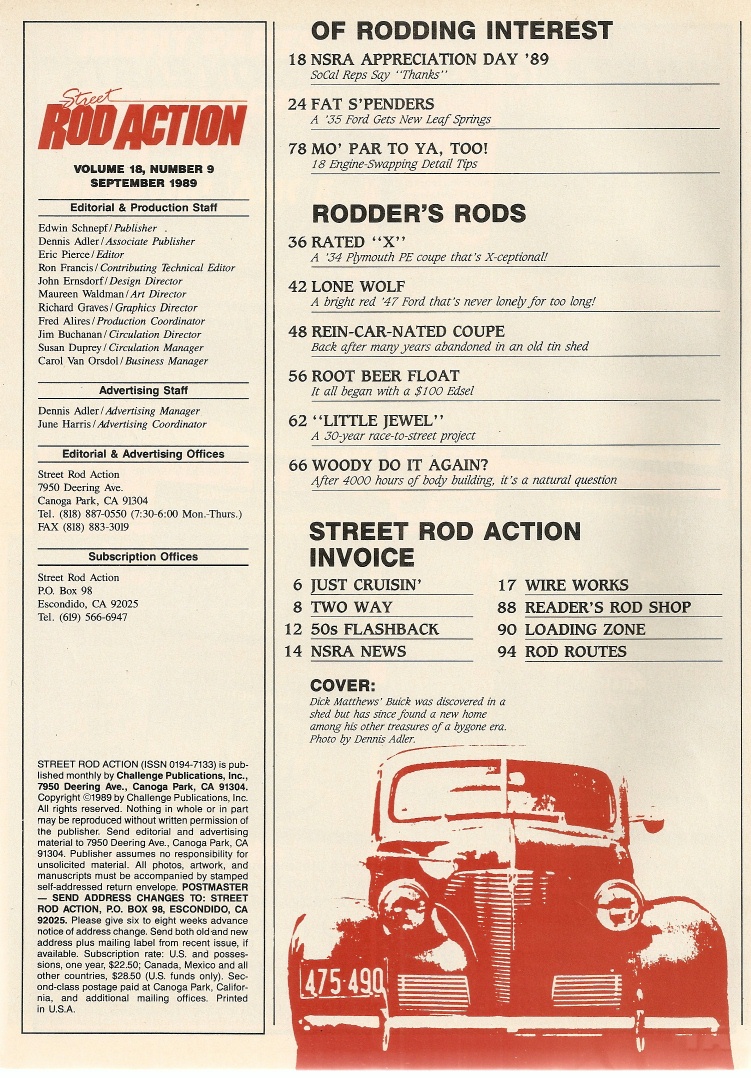 Reviews STREET ROD ACTION 1989 SEPT - NEW LEAFS-FAT FORDS,318 MOPAR ENGINE SWAP PART 2